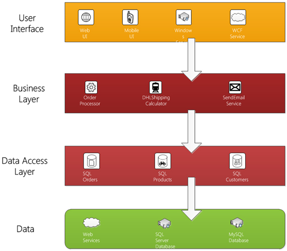 Figure: Bad Example – A solution where each layer depends on static classes is not maintainable or testable