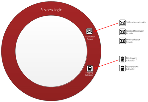 Figure: Good Example – Dependencies in each layer should only be interfaces. This allows dependencies to be easily interchanged and unit tests to be written against mock/fake objects