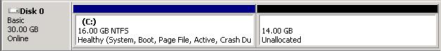 ** Figure: The first partition on the disk needs to be expanded to use up the unallocated space created when expanding the VHD