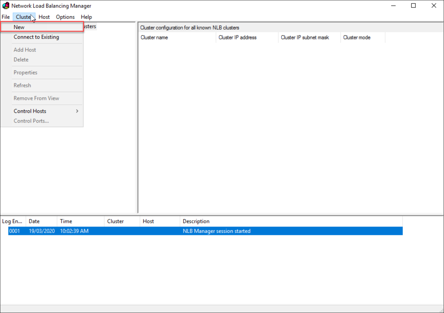 Figure: Under the Cluster menu item, click New