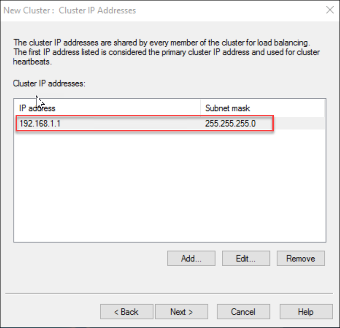 Figure: Enter a virtual IP address for the cluster. eg. 192.168.1.12