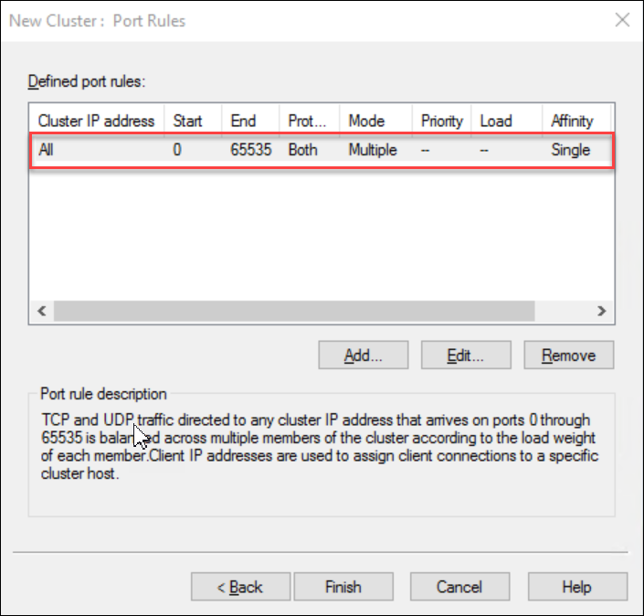 Figure: Leave the Port Rule as default. This will provide sticky session