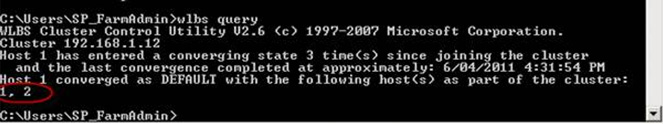 Figure: Type in wlbs query to verify the cluster