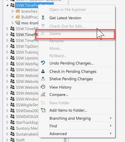 ❌ Figure: Bad Example - Can't delete the now deprecated TFVC repository