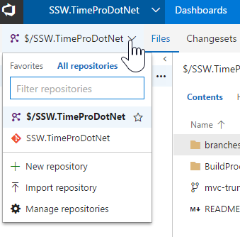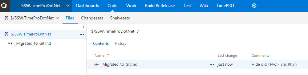 After you use the right tool to migrate from TFVC to Git, there's a few more things you need to do to clean things up for a new user joining the project. By default, if there is a TFVC repository, that will become the default in the UI.