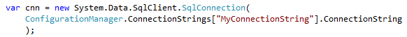 Figure: Good Example - The connection string is now stored in configuration and we don't have a long hard-coded string in the code.