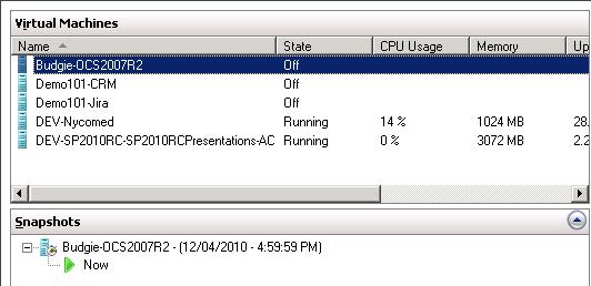 The snapshot should run very quickly and you will notice the snapshot in the Snapshots area of the **Hyper-V Manager