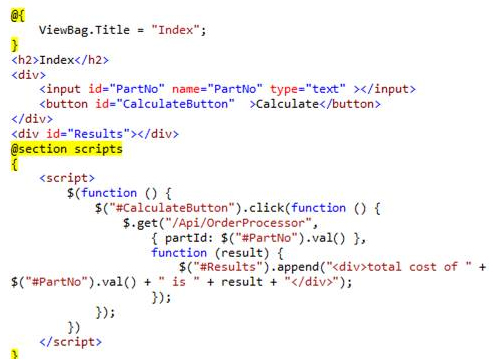 Figure: Good Example - Using jQuery to call the Web API provides a great user experience. The whole page does not need to be posted to the server