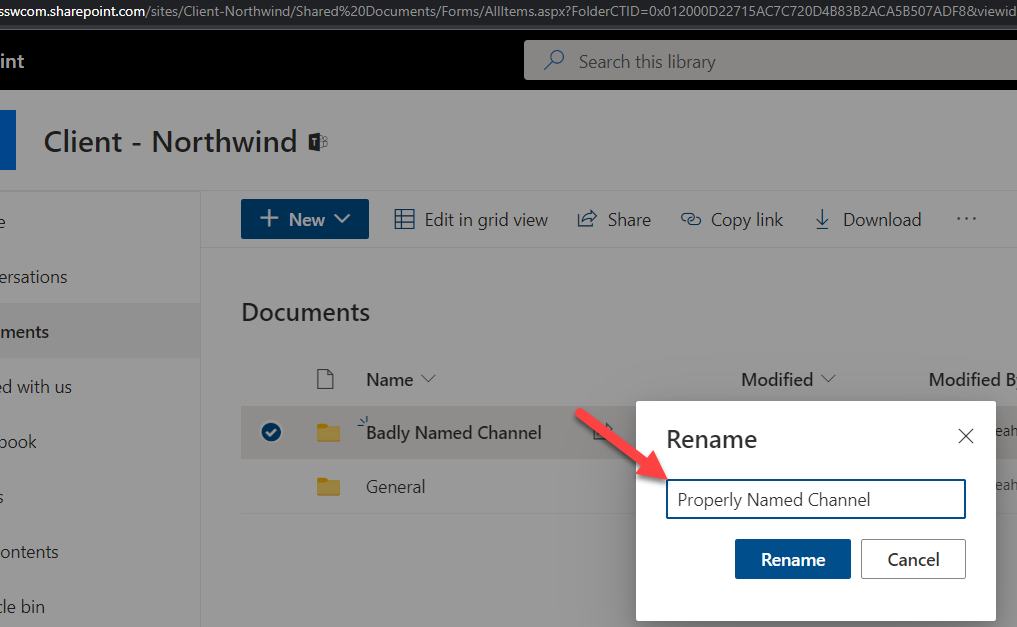 Have you ever made a spelling mistake when you named a Teams channel? Have you then tried to rename the Channel? If so you will notice that the underlying SharePoint folder is still named incorrectly.