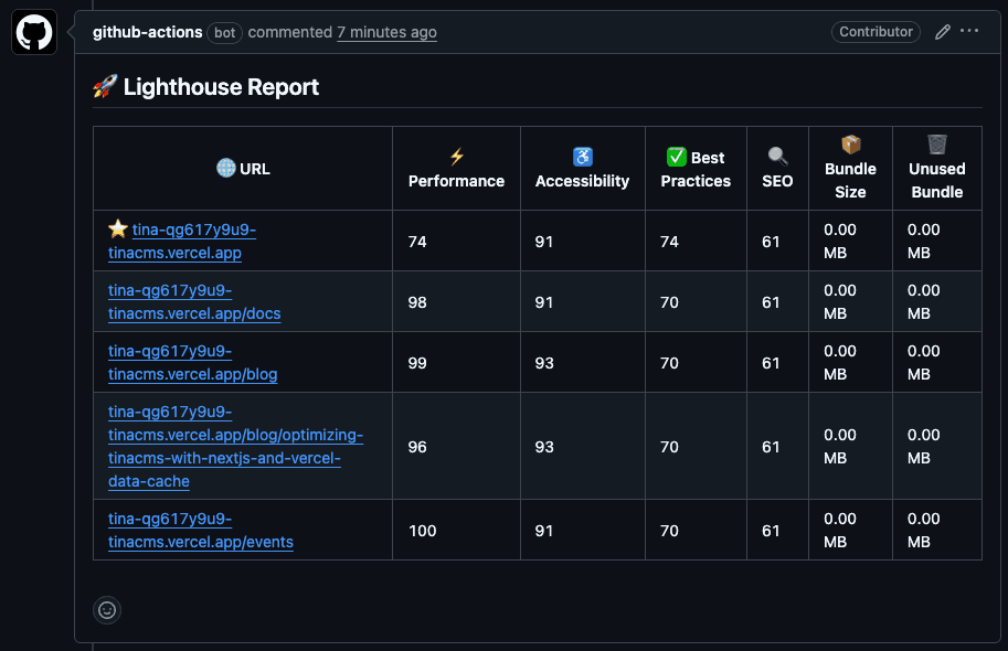 .github/workflows/template-lighthouse.yml) - a reusable template that runs the lighthouse audits on deployed sites. This template will be auditing and eventually commenting on the pull-request - A workflow that triggers the template - this can be included in any workflow that is run as apart of your CI/CD