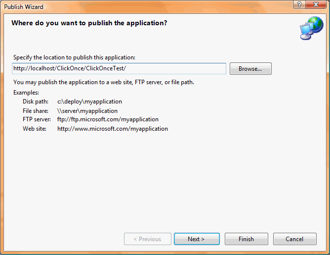 - Publish the application using Publish Wizard.